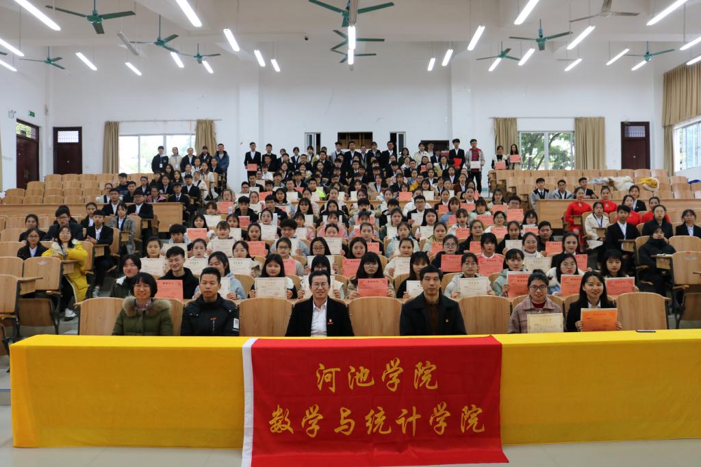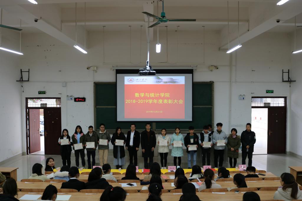 为树立先进典型,发挥榜样作用,表彰优秀学生,12月21日上午,数学与统计学院在东区弘毅楼1-105教室举行了2018-2019学年度表彰大会。数学与统计学院党总支书记黄星寿、院长罗日才、党总支副书记张明进、团委书记罗曼、辅导员姚宁,罗超及各班级学生代表出席本次大会。