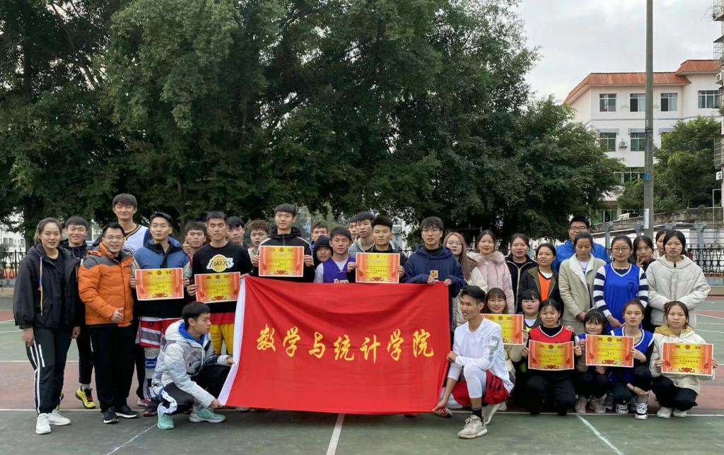为丰富学生课余文化生活,培养团队协作精神,加强专业班级间的交流学习,推进校园文化建设,提高学生的身体素质,展现大学生青春活泼、积极向上的精神风貌。数学与统计学院 “挑战杯”班级篮球联赛于12月5日在西区篮球场圆顺利开展。