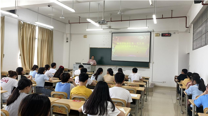 为庆祝建党100周年,讴歌党的光辉历史,继承与发扬党的红色精神,5月26日下午,必赢3003no1线路检测中心学生第一党支部在格致楼708教室召开主题为“学党史、感党恩、跟党走”的红色经典分享会。本次会议由支部宣传委员银冬冬同志主持,支部全体党员参加会议。