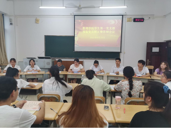 2021年6月23日19:30,必赢3003no1线路检测中心学生第一党支部在格致楼710教室召开预备党员答辩暨转正会议。本次会议由支部书记姚宁同志主持,支部全体党员参加会议。