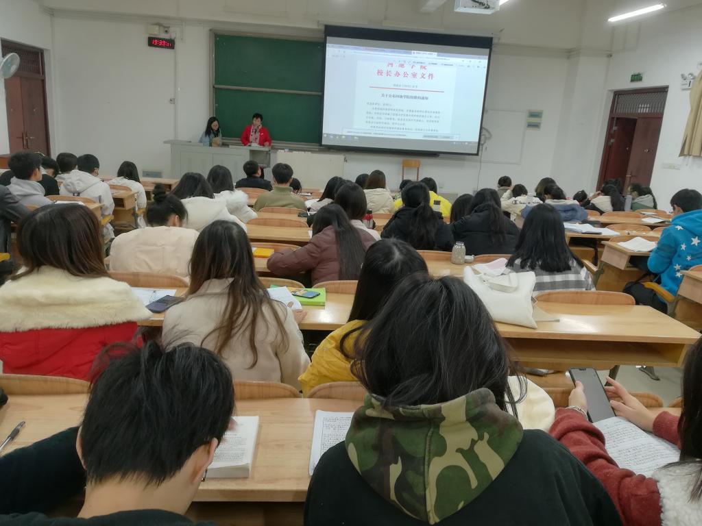 本次班会,再次让同学们了解审核评估的重要性。也让同学们更好的了解了校歌、校训的含义,增强了同学们的爱校荣校的决心,培养同学们的集体意识。(17数应班供稿)