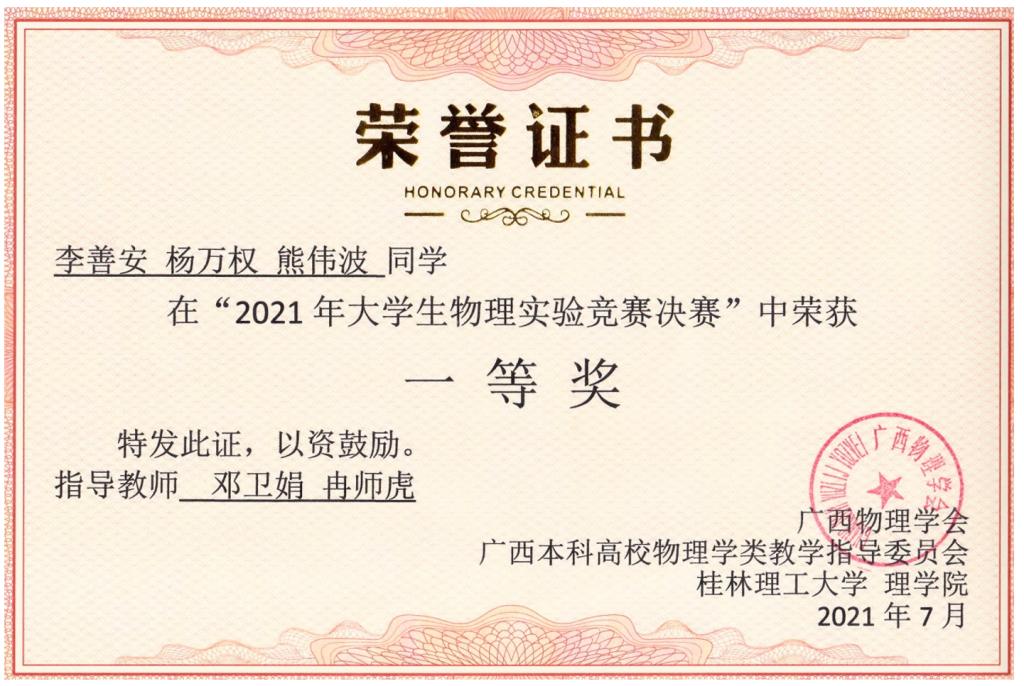 截至2022年5月,必赢3003no1线路检测中心学生在国家级及自治区各类比赛中获奖230多项。其中,在各学科专业竞赛中,均获得较好的成绩。必赢3003no1线路检测中心学子在参加历届的全国大学生数学建模竞赛,全国大学物理实验、“国信蓝点杯”——全国软件专业人才设计与开发大赛、广西区师范技能大赛、 “挑战杯”广西大学生课外学术科学竞赛、广西大学生创业模拟实战大赛、广西科技运动会等赛事,多次荣获一等奖、二等奖、三等奖。