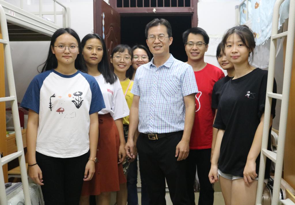 2019年9月24日,为及时了解新生的入宿情况,进一步做好新生入学教育工作,帮助新生尽快适应大学生活,必赢3003no1线路检测中心院长罗日才、党总支副书记张明进、团委书记罗曼及2019级各班班主任老师深入新生寝室,探访慰问2019级新同学。