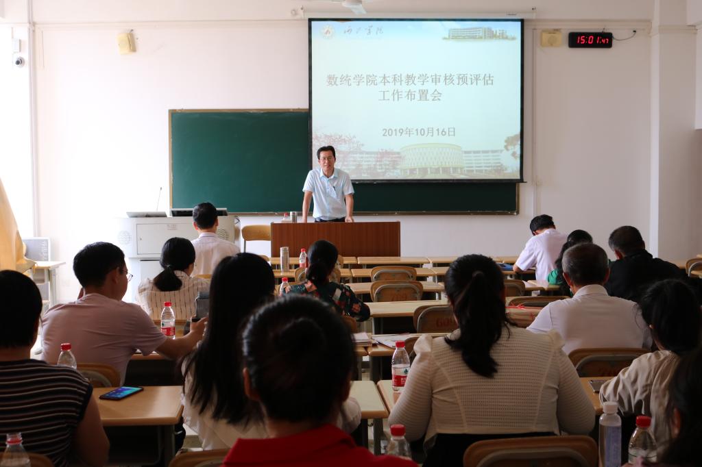 为迎接本科教学审核预评估工作,数学与统计学院于10月16日在格致楼710教室召开了教学审核预评估工作布置会,学院党总支部书记黄星寿、院长罗日才及全体教师职工参加会议。