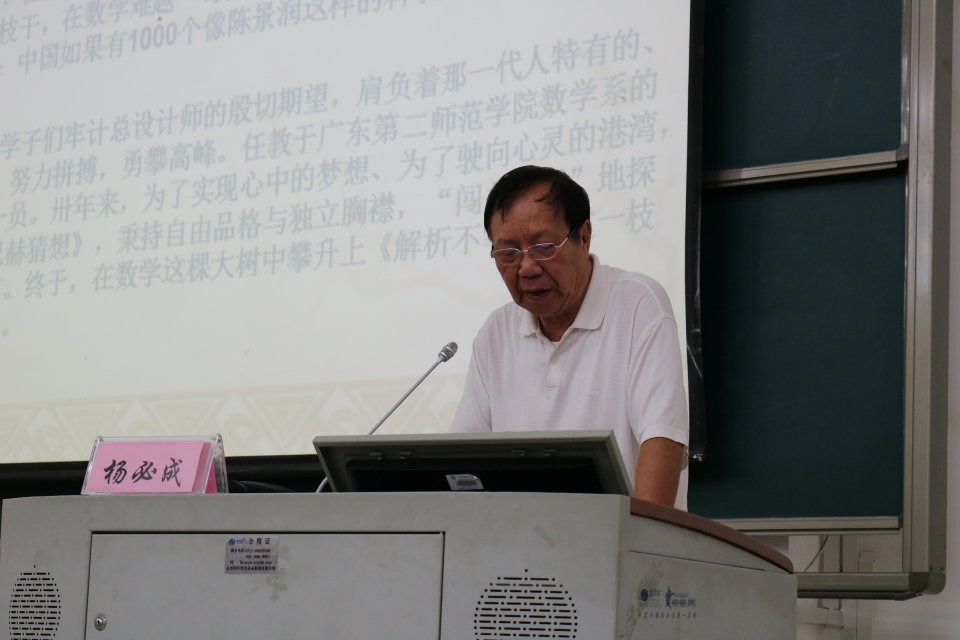 11月7日,广东第二师范学院应用数学研究所所长杨必成教授应邀到数统学院讲学,全院师生代表在西区格致楼负101教室聆听了杨必成教授题为《自由品格沐春风——谈谈我的追梦数学之旅》的励志讲座。本次讲座由数统学院党总支书记黄星寿主持。
