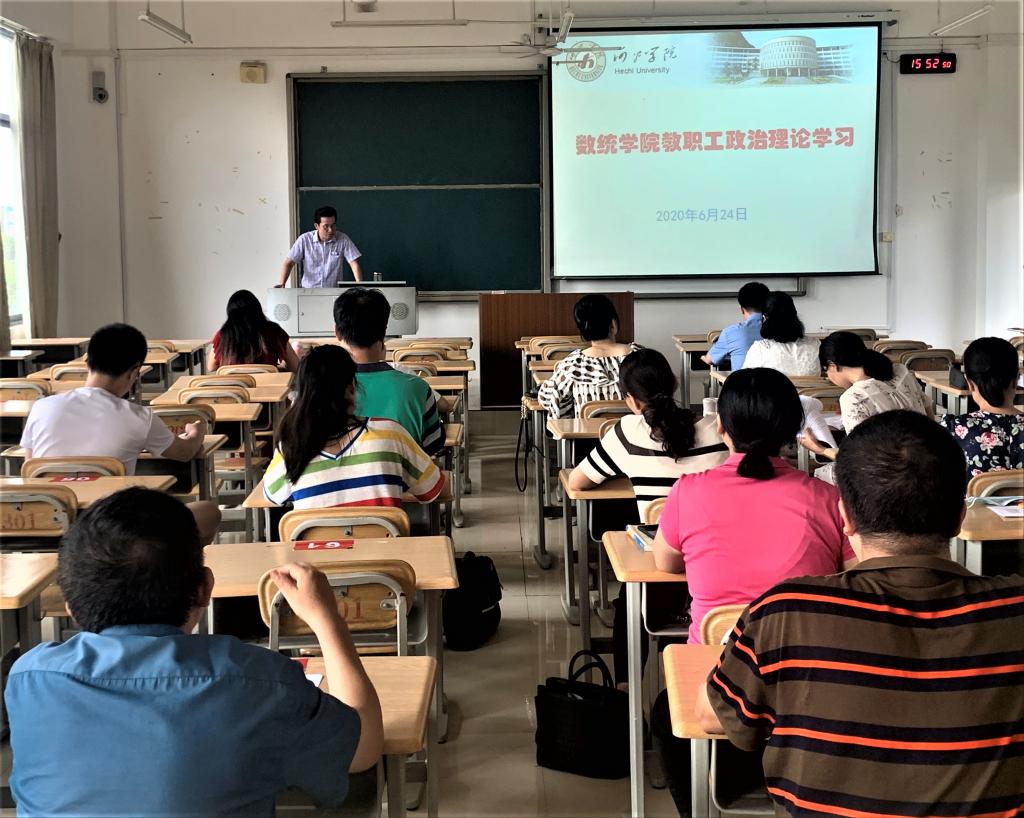 为引导广大师生深刻领会、准确把握今年全国“两会”的精神实质,数学与统计学院于6月24日下午在西区格致楼301教室召开全国“两会”精神专题学习会。会议由院长罗日才主持,全体教职工参加会议。