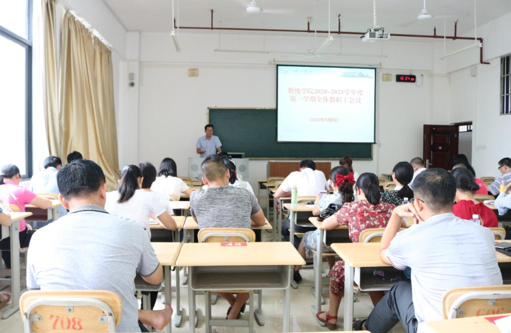 9月6日下午,为切实做好新学期各项准备工作,数统学院在格致楼708教室召开新学期全体教职工会议,研究部署新学期重点工作。学院党政领导及全体教职工参加了会议,会议由学院院长罗日才主持。