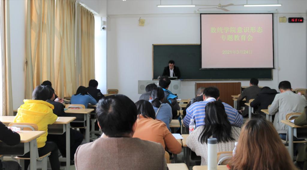 为深入做好学院意识形态工作,3月24日下午,数统学院在格致楼710教室召开2021年意识形态专题教育会,学院全体教职工参加,数统学院党委副书记张明进主持会议。