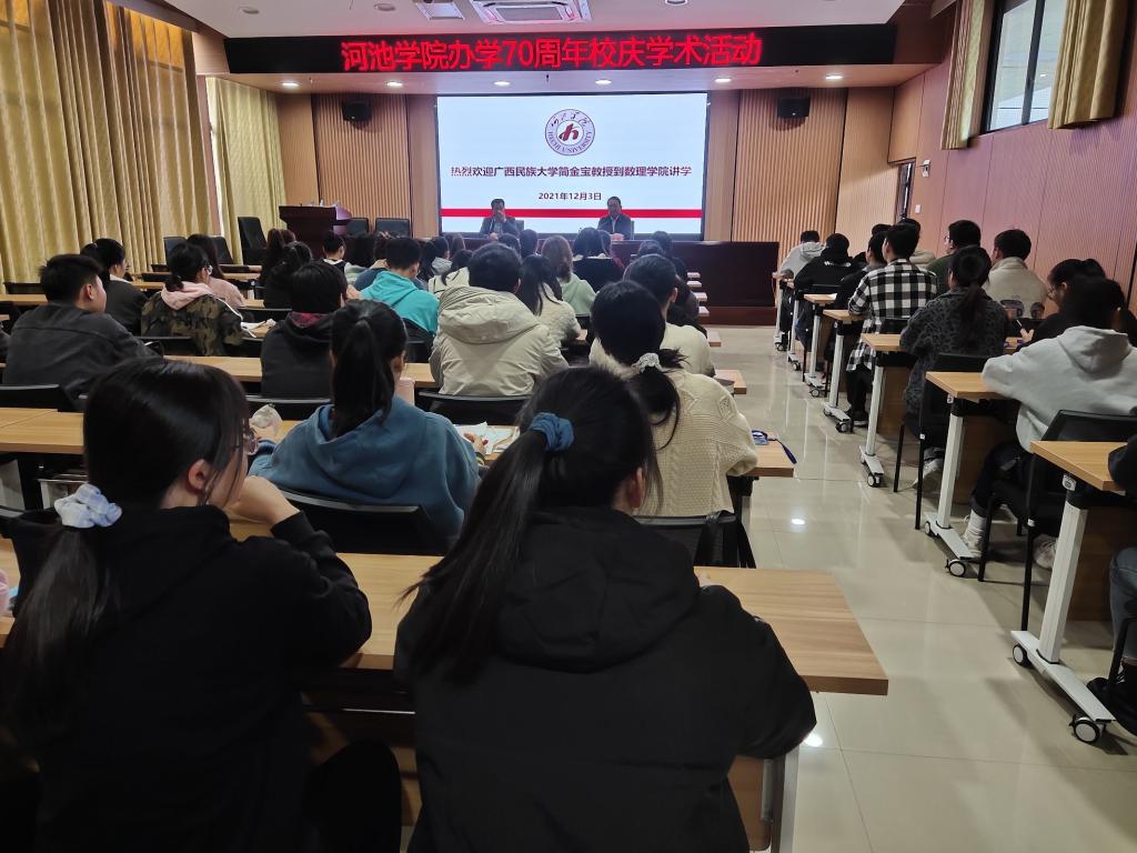 为营造必赢3003no1线路检测中心建校七十周年浓厚学术氛围,广西民族大学党委常委、副校长简金宝教授应邀到必赢3003no1线路检测中心进行讲学。