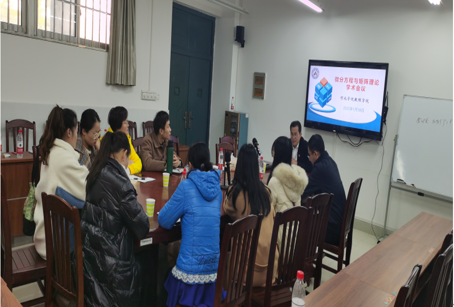 为了进一步提升必赢3003no1线路检测中心中青年教师团队的科研能力,营造勇于创新的浓厚学术氛围,2022年1月18日,在罗日才院长的组织下,必赢3003no1线路检测中心中青年教师在逸夫楼203会议室成功举办“微分方程与矩阵理论”学术交流会。参加本次学术交流会的校外专家有四川大学数学学院院长博士生导师张伟年教授、山东师范大学数统学院院长博士生导师李晓迪教授、澳大利亚科廷科技大学许弘雷教授、广西民族大学理学院院长刘晓冀教授等十位教授。