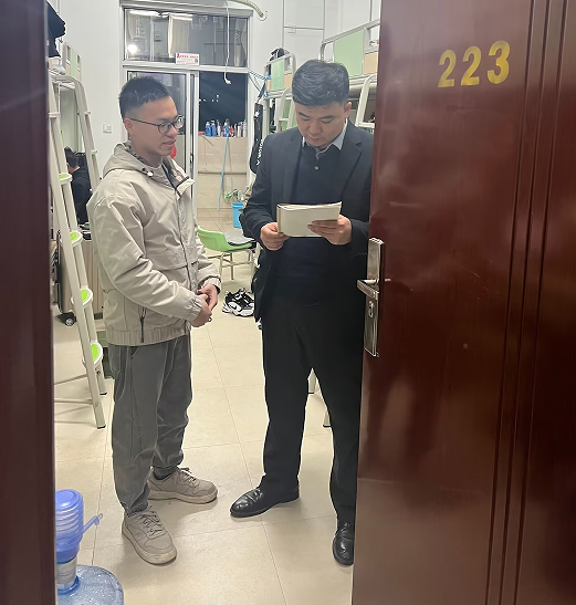 会后,学院领导班子及全体辅导员、班主任走访学生宿舍,了解学生返校情况并关心学生的学习、生活状况,提醒同学们注意宿舍安全,并督促大家好好复习,迎接期末考试。