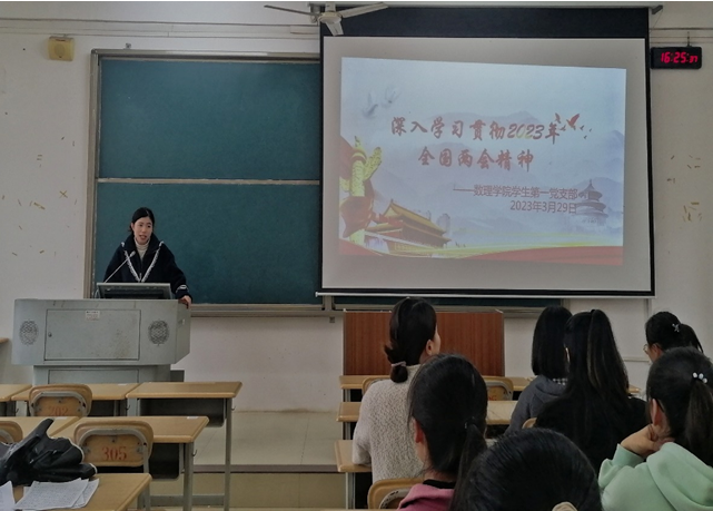 3月29日下午,必赢3003no1线路检测中心学生第一党支部在格致楼301教室开展2023年全国两会精神专题学习会。会议由党支部书记姚宁同志主持,支部全体党员参加会议。