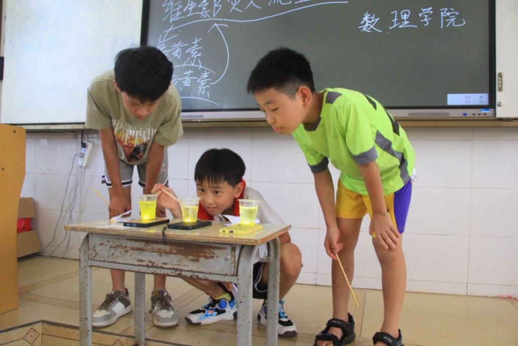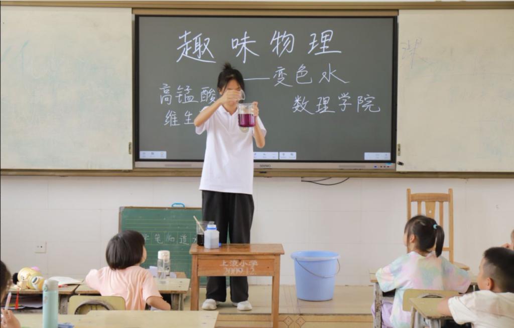 在同一时期,“数暖童心,物理启智”乡村振兴促进团亦前往上浪村小学,开展以“探索物理奥秘,点亮科技梦想”为主题的趣味课堂活动。团队结合专业特长,设计了多个贴近生活、富有趣味的物理实验,引导孩子们亲自动手操作、体验科学魅力,提升他们对物理学习的兴趣与信心。此次活动不仅丰富了农村孩子的课余生活,也推动科学教育资源下沉基层,充分体现了新时代青年的知识力量与责任担当。